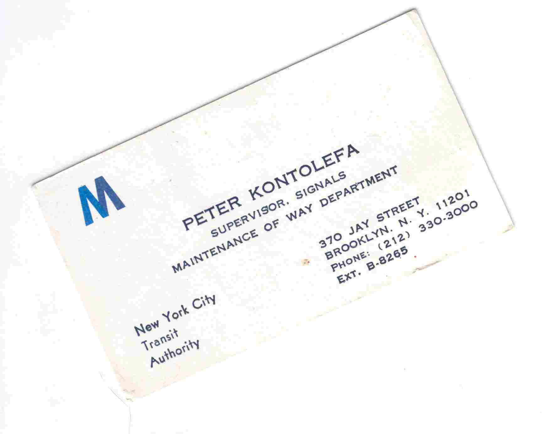 After retirement, Peter continued working on the NYC Subway system as a contractor for the various companies doing work on the subways. With his pension he actually started to do fairly well.